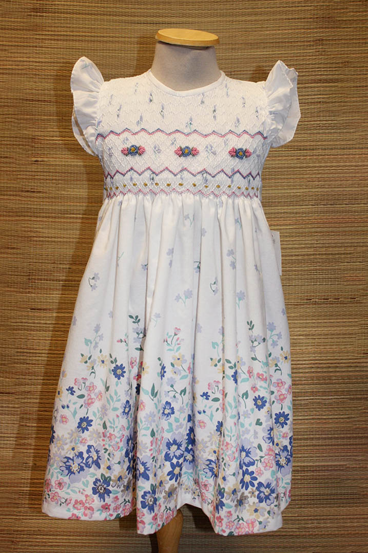 Vestido de poplin estampado con bordado punto smock